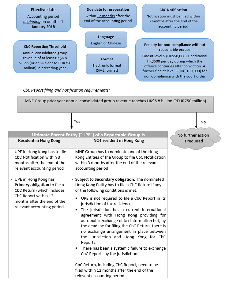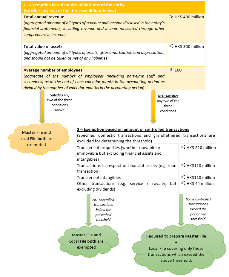 Hong Kong follows the OECD’s three-tiered standardized approach for transfer pricing documentation, includes Master File, Local File and Country-by-Country (“CbC”) Report. Exemption thresholds are provided for preparing Master File, Local File and CbC Report.