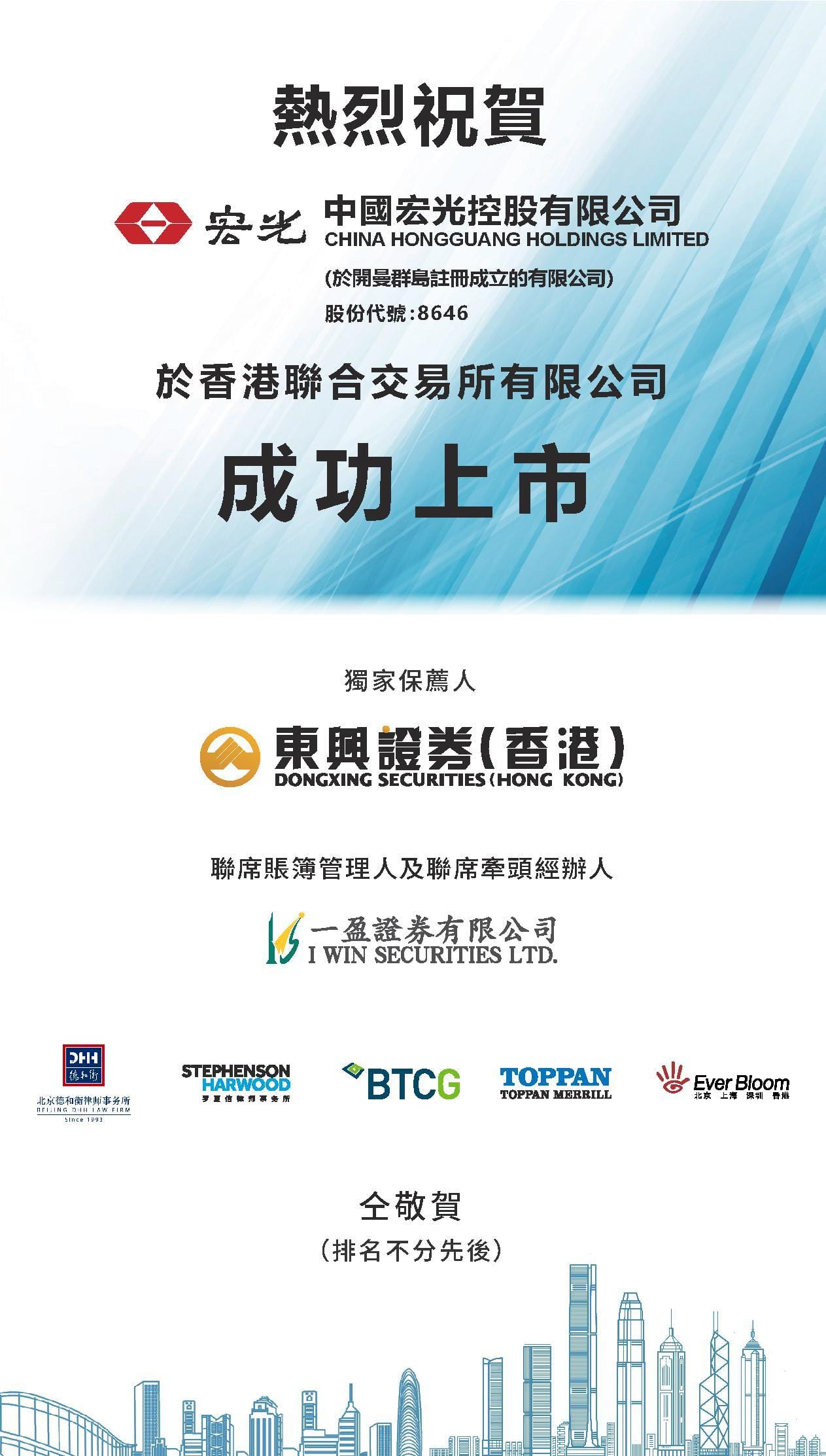 Congratulations to China Hongguang Holdings Limited on successful listing on the GEM Board of the SEHK