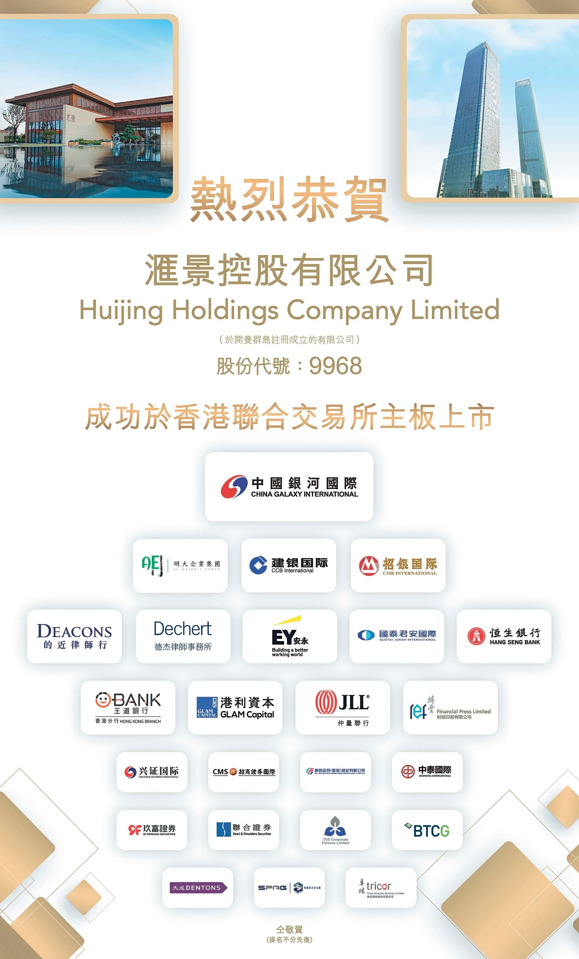 Congratulations to Huijing Holdings Company Ltd on successful listing on the Main Board of the SEHK [只提供英文版本]