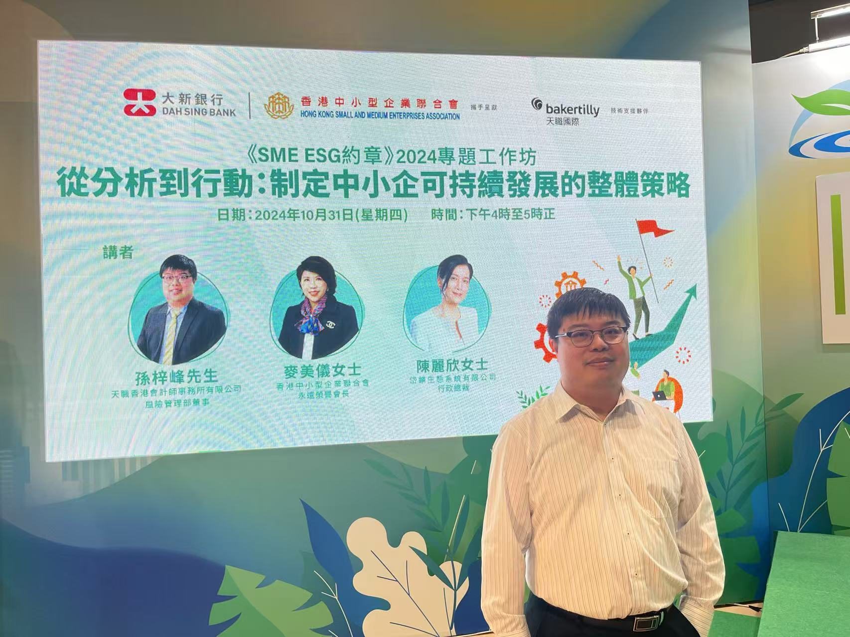 This year at ECO EXPO Asia, hosted by HKTDC, Baker Tilly Hong Kong showcased its expertise through a remarkable workshop. Led by Mr. Andy Suen, Associate Director of the Risk and Financial Advisory Department, the workshop offered extensive insights into sustainable business practices suitable for SMEs.