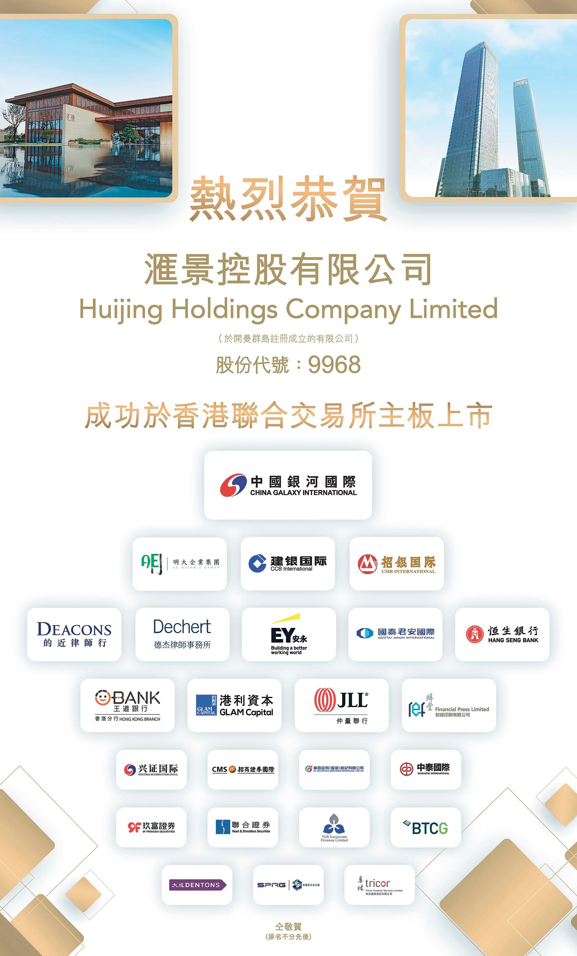 Congratulations to Huijing Holdings Company Ltd on successful listing on the Main Board of the SEHK [只提供英文版本]