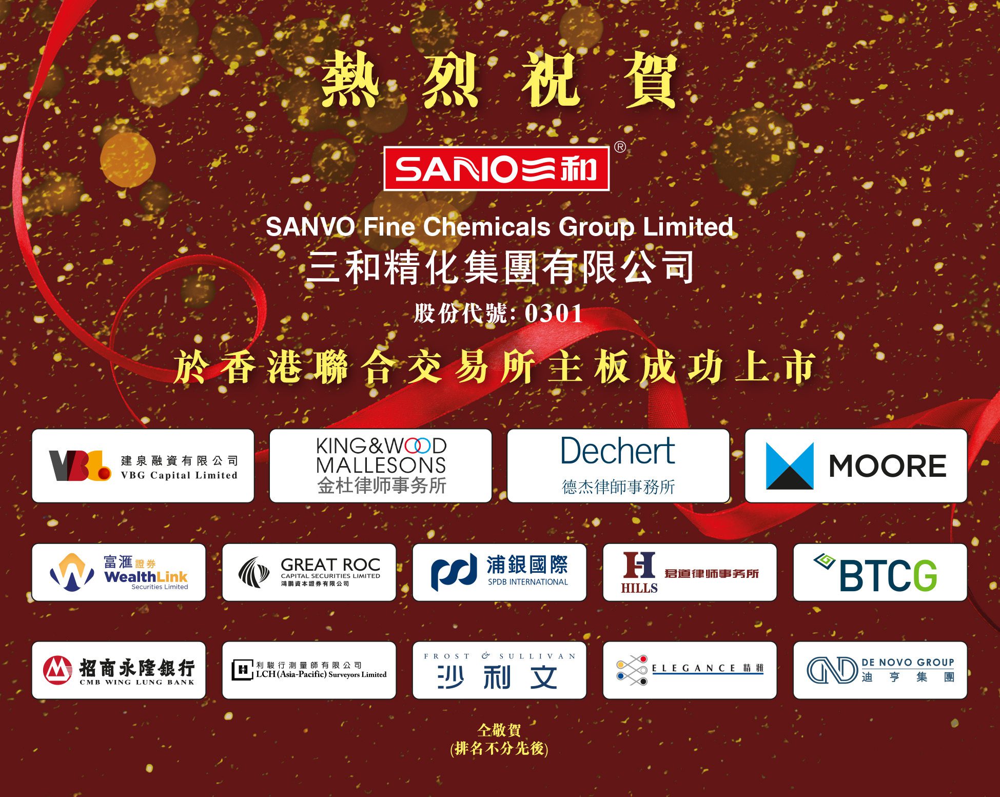 Congratulations to SANVO Fine Chemicals Group Ltd on successful listing on the Main Board of the SEHK [只提供英文版本]